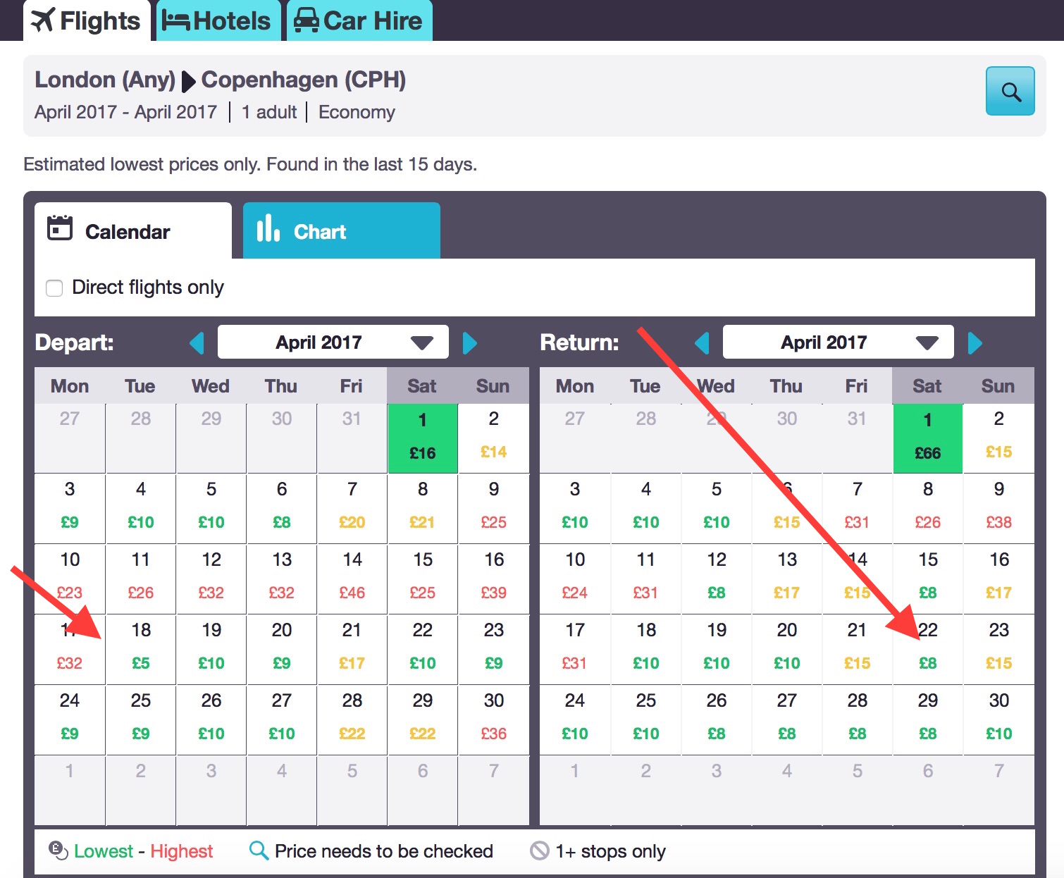 If you haven’t already, visit Skyscanner . Type in your date of travel and your preferred destination and hey presto you have a choice of destinations. If you are not fussed about where and when you are going, just choose the ‘Everywhere’ option and the month you would like to travel in, see where the cheapest flights are and book. Some insane deals can be found. For example from London, I’ve discovered £13 return flights to Copenhagen in April ( 18th April-22nd April, from Luton).