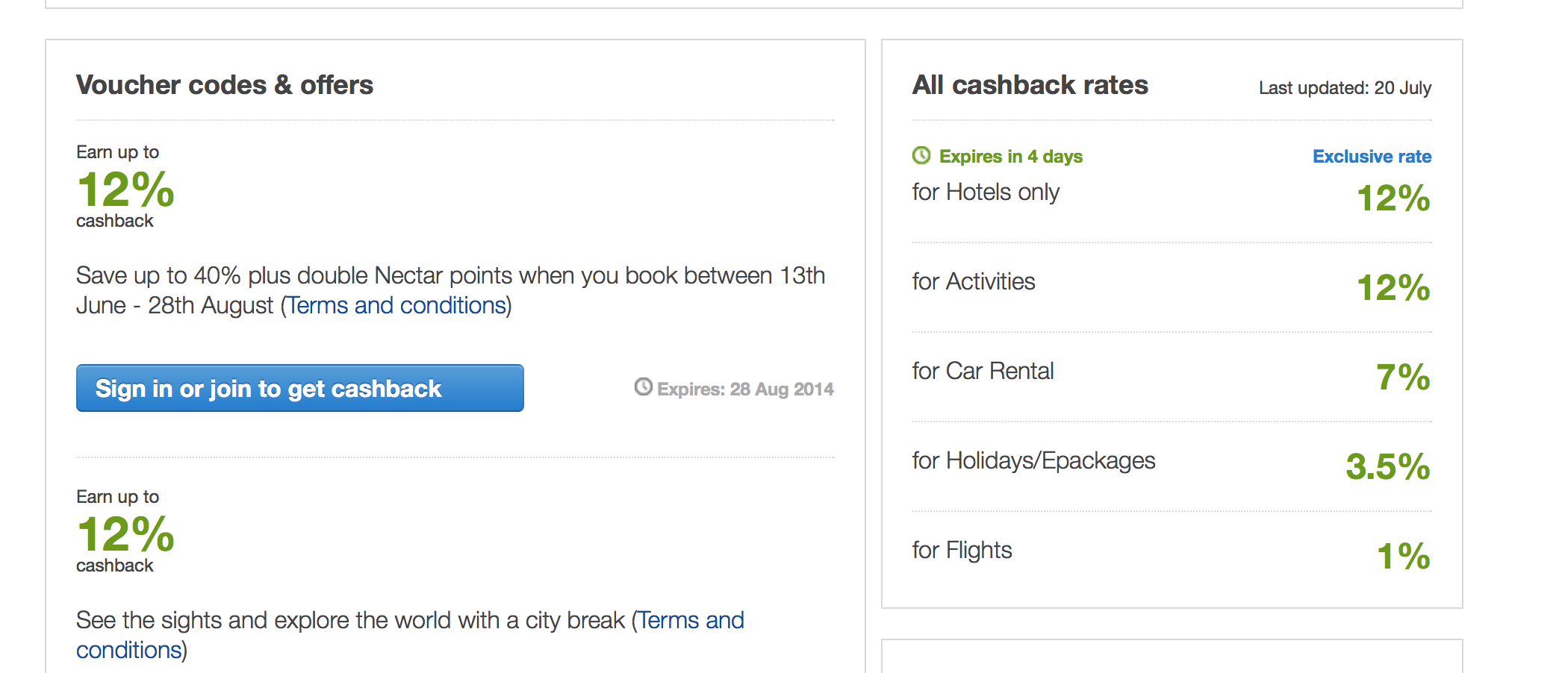 4. The other site to definitely check out ( UK residents only ) is Quidco. Instead of giving you a money off voucher codes, if you book via Quidco you get cashback on your purchases. For example booking via Quidco you get 12% cashback on Expedia Hotels. ( A measly 1% on flights ) If you are booking flights with Norwegian Airlines the cash back currently amounts to 2.5%. So if you are booking a return flight with Norwegian from London to New York for say £350 return, that is a saving of £8.75.