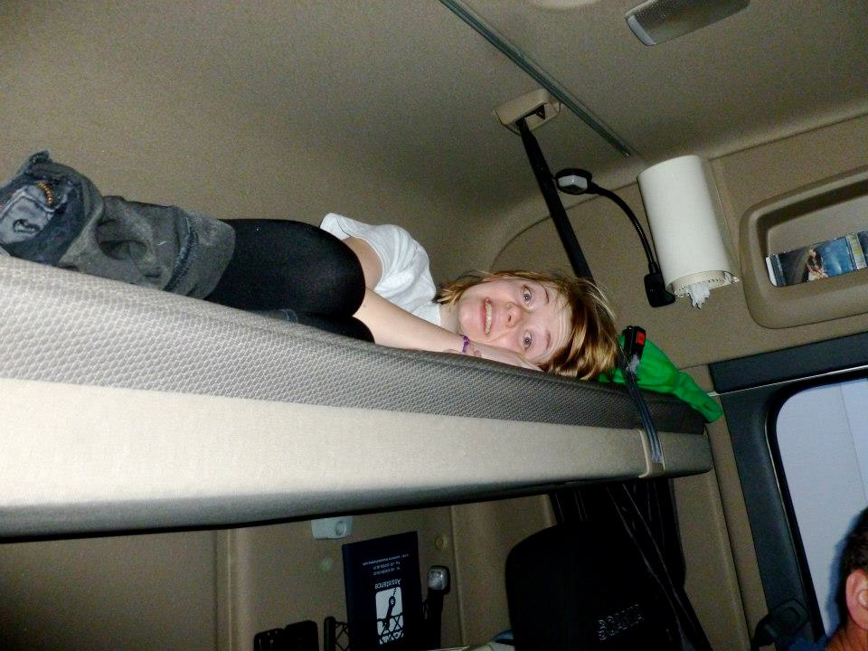 In hindsight, sleeping in a lorry with a man who a.) got us drunk on truck stop wine b.) told us repeatedly that he wanted us to ‘make beautiful luuurve’ in his truck (don’t worry, he assured us he wouldn’t disturb us, and would just be sleeping in his bunk below) and would c.) murder us (his exact words), was not the smartest idea.