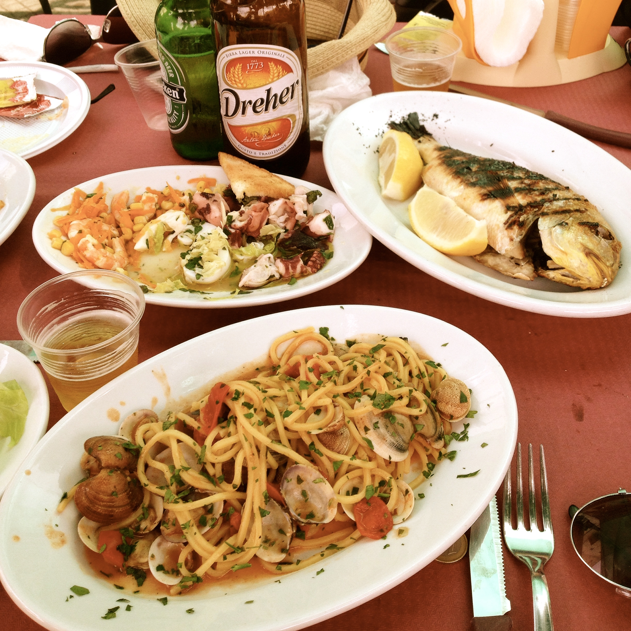 The other great thing about Puglia is that you have 700 kms of coastline. So if you are looking for a nice beach , it’s pretty easy to find one. Just a short hop from Ostuni, we found Villanova. Small but lovely beach. Family friendly. Weather was not perfect but the water was warm, clear and good for a swim. Afterwards, I had a nice martini rosso from the beach bar.
