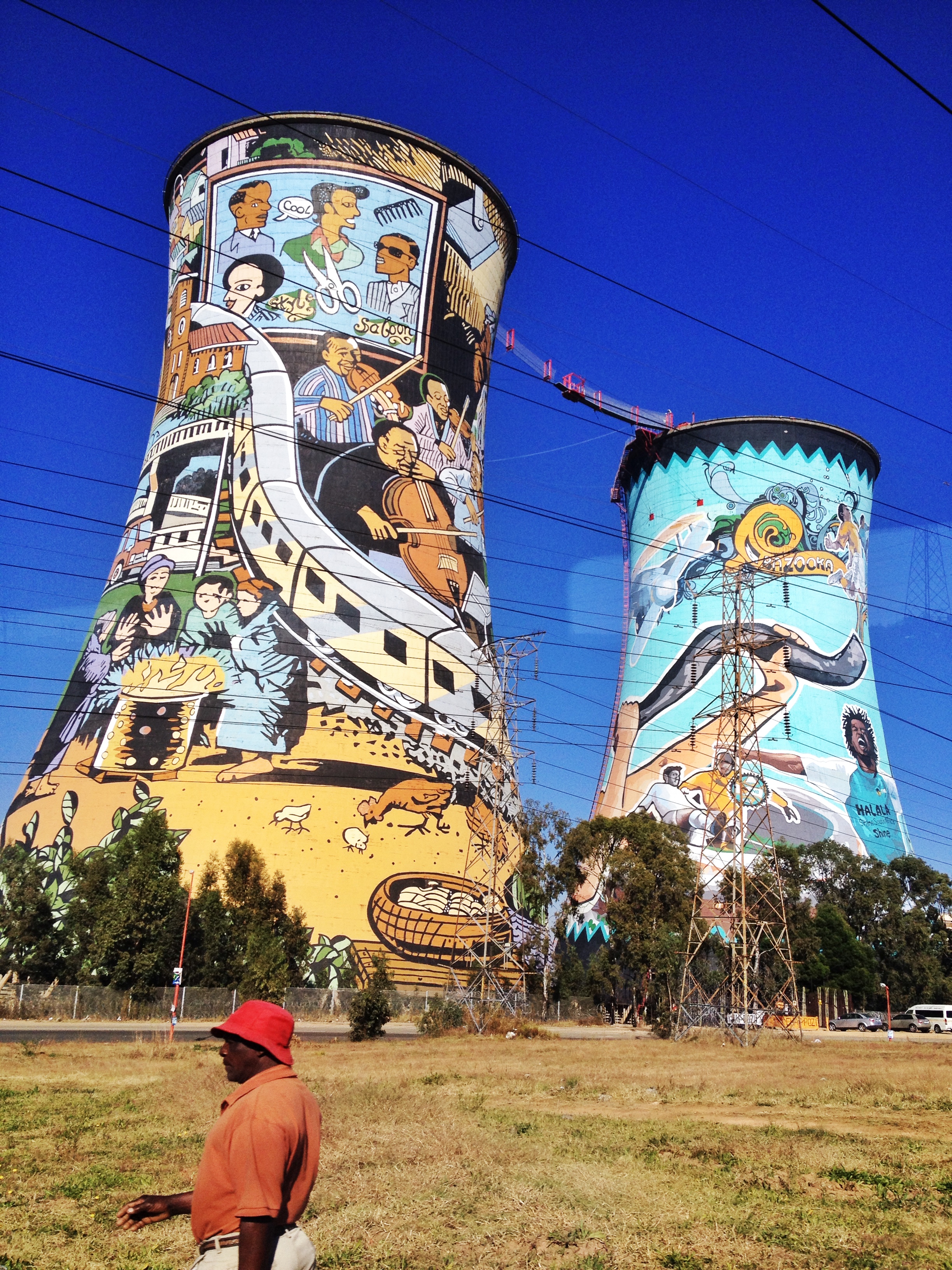 Orlando Towers- formerly a decommissioned coal fired power station in Soweto, South Africa,the twin water cooling towers are now home to the largest mural painting in South Africa and also serves as a bungee +base jump platform.Walking through the streets of Soweto…