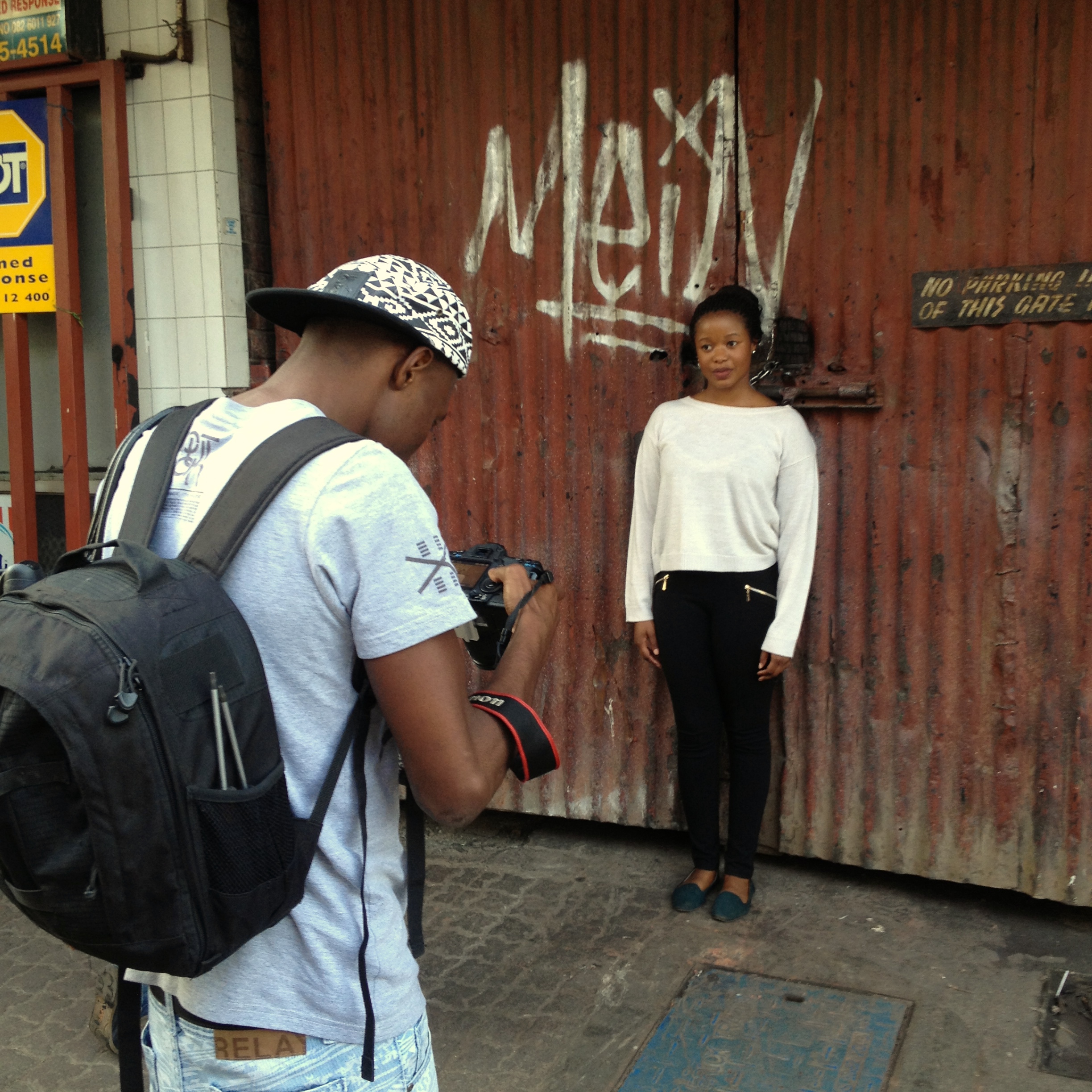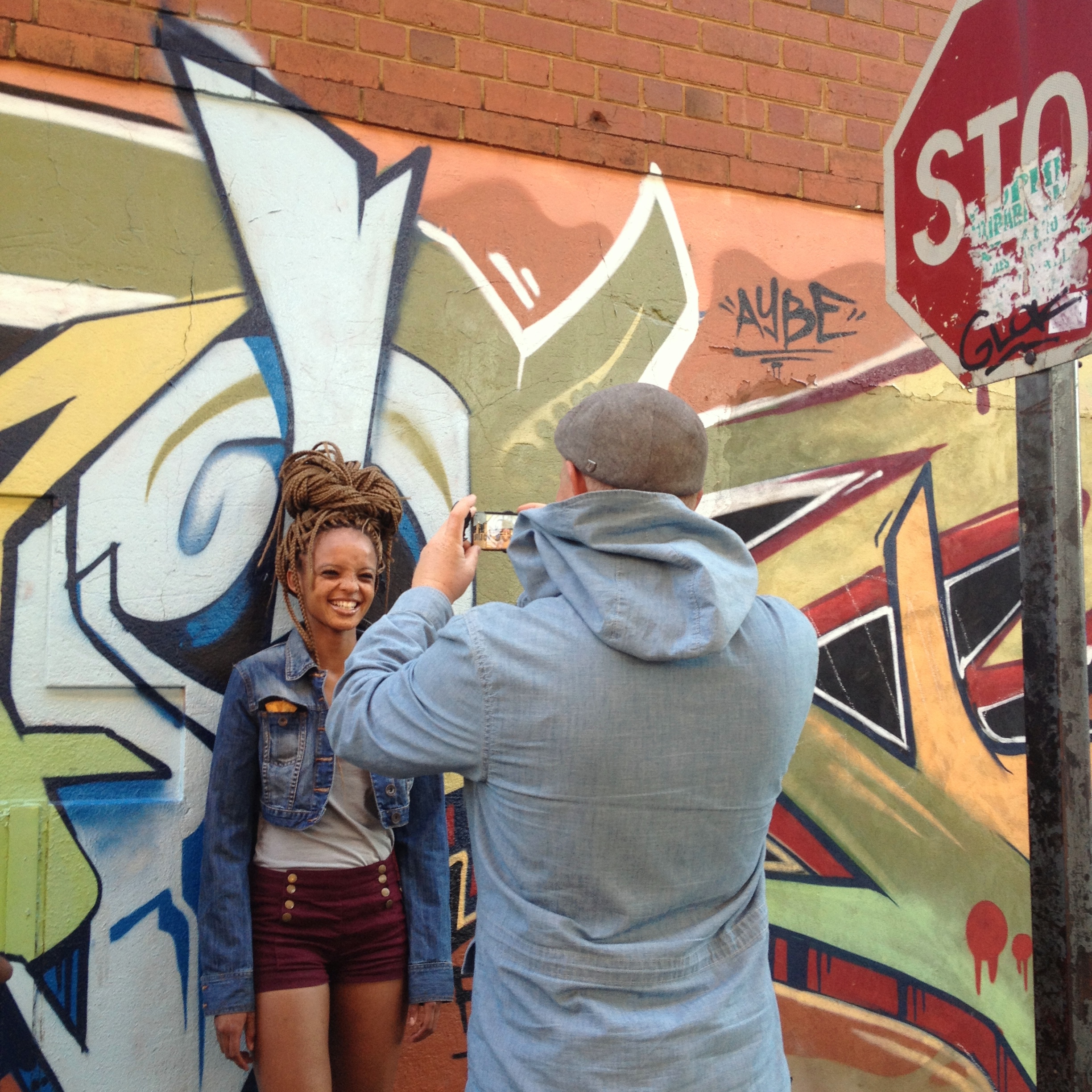 Perfect place to end the day in Maboneng is high up on the rooftop of Main Change – Living Room, an eco bar/cafe which offers tasty snacks, drinks and stunning panoramic views of Jozi.Next day went for a walk around Maboneng and downtown JHB with a few local instagrammers. First stop was this epic Mandela mural – ‘Shadow boxer’ by graffiti artist Ricky Lee Gordon.Meet the instagrammers of Johannesburg.Instgramming the instagrammer- Roy Wrench, one of the top Instagrammers of South Africa instagramming the lovely AfricanRedHead