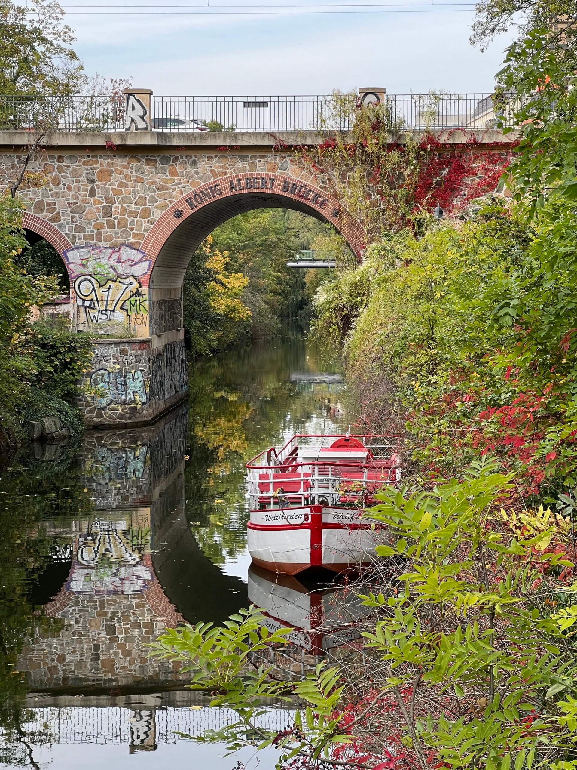 At the end of Karl Heine Strasse there is a turning onto the Karl Heine canal path. Stretching for 3.3 kilometres, this is a beautiful walk, anytime of the year. In Autumn, it is especially magical with all the colours and the reflections in the water. Lined with historic villas to modern industrial lofts, the canal is also a great timeline of the city, another form of time travel where you walk from the past, straight into the future.