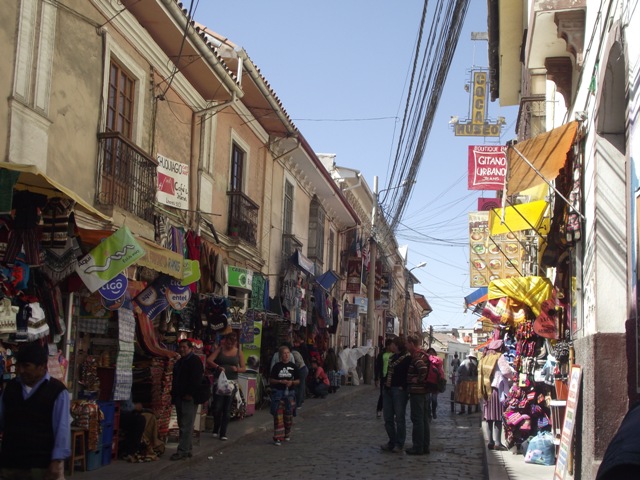 You will quickly find that La Paz is rather lacking on the supermarket front, so if you need to stock up on supplies, head to the bottom of Illampu, past the tourist area, to the fruit and veg market (by market, I mean women sitting on the ground with their produce laid out on the road in front of them) and to the mercado central for stalls selling just about everything else.