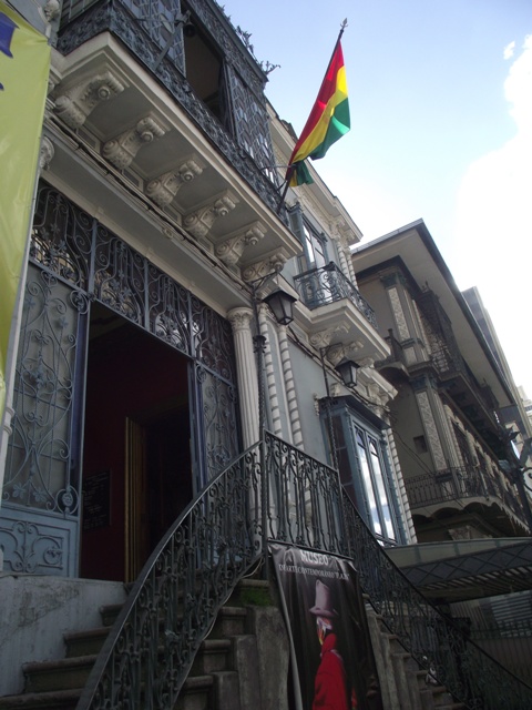 Once you’ve had your coffee and internet fix, wander up the main 6 de Agosto road towards the university. Here, you will find an independent, arty cinema (as well as a multiplex) and possibly one of the best modern art museums in South America, if not the world. Housed in a pretty, blue, colonial building, it showcases works of contemporary Bolivian artists, which, rather than having that usual modern art aspect of offering some odd conceptual statement, actually display true artistic talent strongly rooted in the Bolivian psyche and culture. Entry is just 15b (about £1.20) and is well worth it.