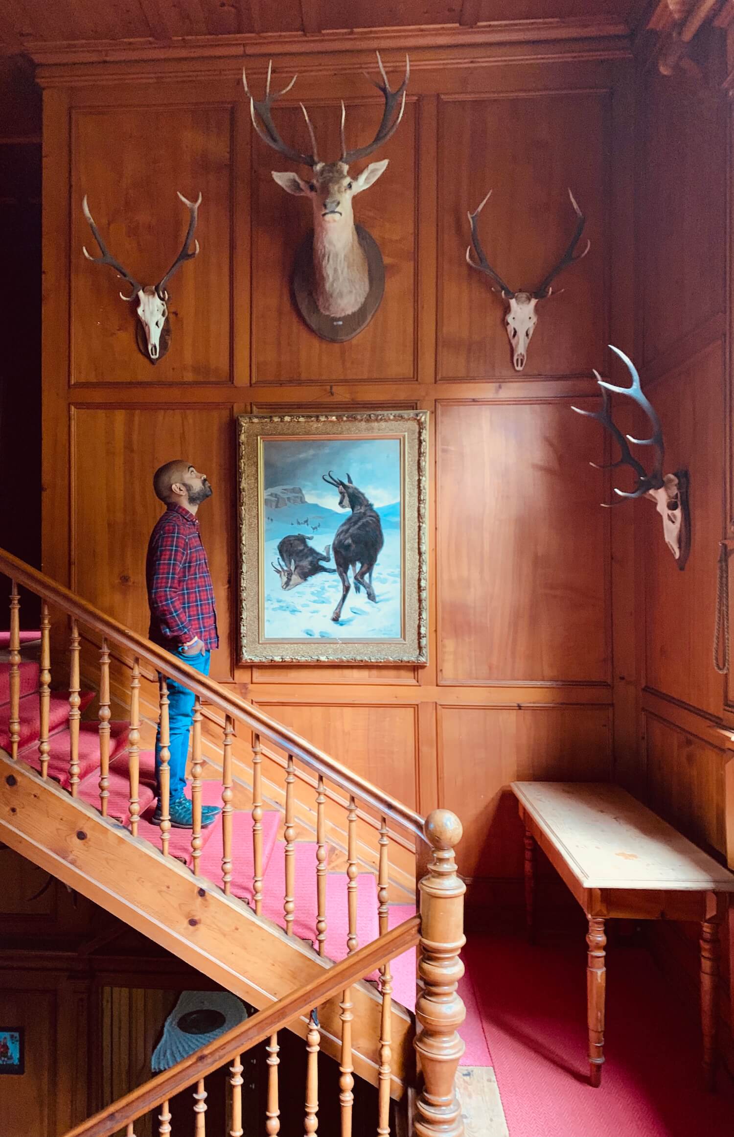 The house itself is dreamy, a nod to the excellence of wooden craftsmanship that is a hallmark of the Vorarlberg region. With a striking wooden staircase decorated with taxidermy and a fireplace that is straight out of a Wes Anderson movie, it is a wonderful place to linger in. No surprise, the villa is highly in demand for wedding and special events. Access to the place is complicated but guided tours are offered in the summer by the nearby Hotel Adler.