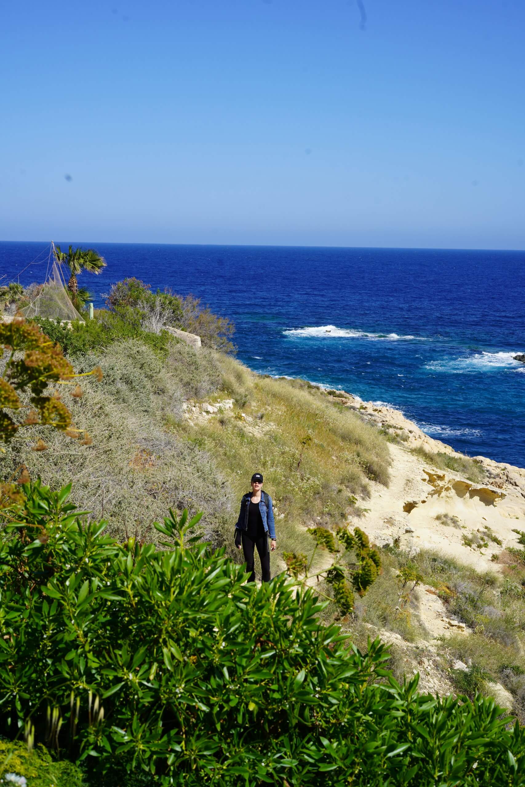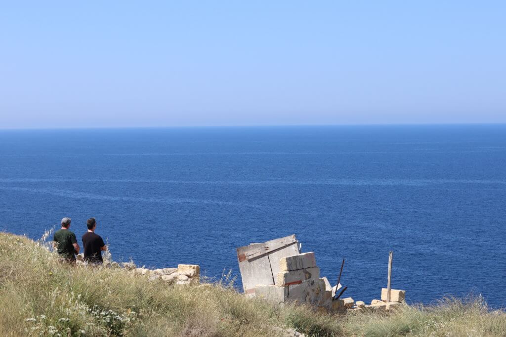 We stumble down the sulphur-yellow dirt track, no sign of Claire’s secret beach. In the past 15 minutes we have been honoured with just the odd lonesome goat for company and the swallows, dancing above our heads. I take a slurp of my water. It is past midday but already the April sun feels strong on our skin. We reach a dead end. Force of nature implores me to look at my phone for answers. According to Google Maps, the track or beach does not exist. We are in no-mans lands. I look up again, into the distance, my eyes swimming in the most perfect shade of deep blue Mediterranean Sea. Sabrina reminds me that Claire, our new Gozitan acquaintance had mentioned a turn off to the right. We retrace our steps up the dusty yellow track.
