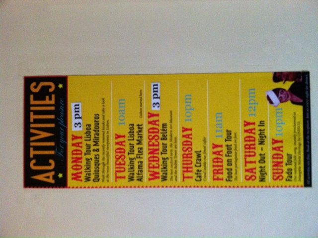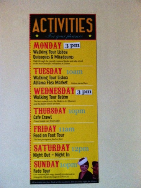 They are full of useful information, unstintingly helpful and organise a clutch of great events for guests from free walking tours of the Lisbon, evening dinners, guided visits to a Fado bar or a visit to the Alfama market.