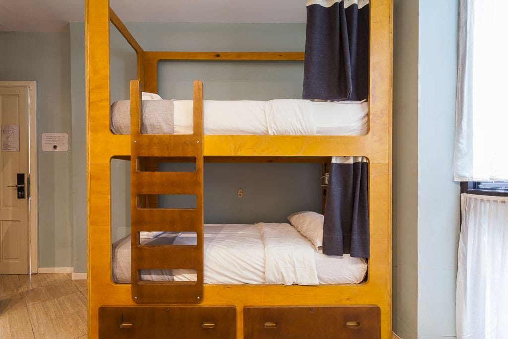 Booking via Hostelworld, a bed in a 8-bed ensuite dorm starts around €27 while a bed in their 4 bed mixed dorm is around €33.