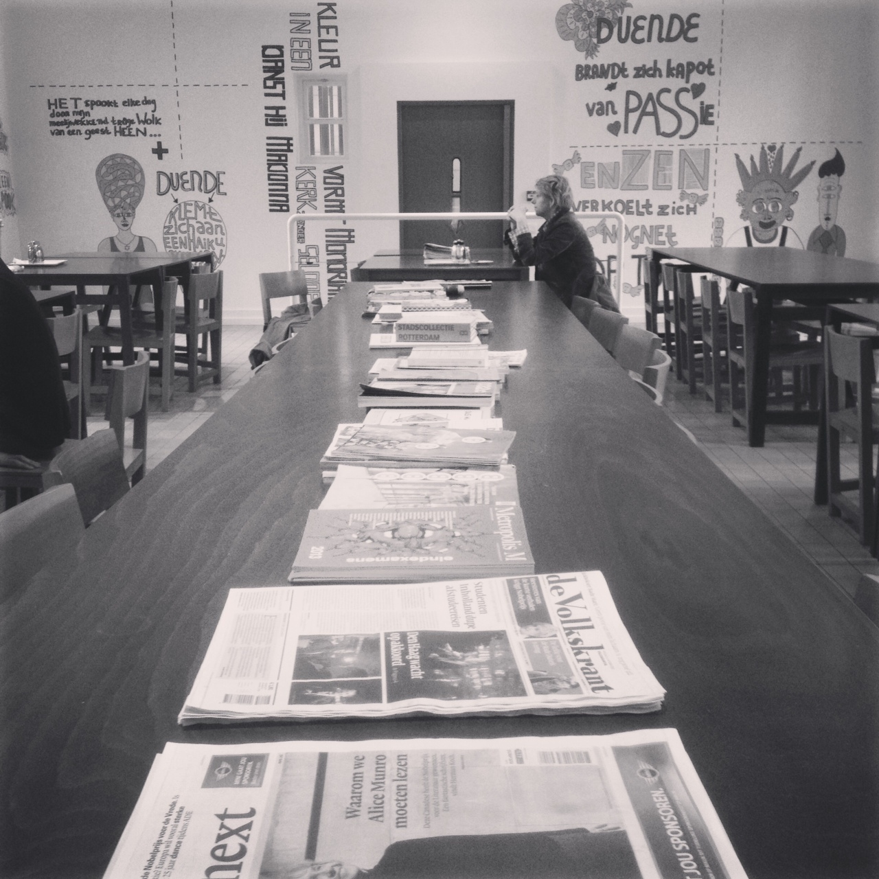 Back to almost the present- Rotterdam and the café at the Bojimans museum. Sofia was desperately needing to make a phone call to her parents via Skype and hence needed a decent wifi connection. After buying our tickets to the museum, the friendly receptionist informs us that the café has both free AND working wifi. While she makes her phone call, I buy two coffees. Both come with a free piece of chocolate shortbread. I pick up a selection of local magazines lying on the next table and for a few moments, find myself really absorbed, enjoying myself.