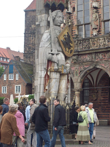 The 13m high statue represents the Knight Roland –supposedly it is the tallest representation of Germany’s freedom loving Knight. As we turned away there was out first fated glimpse of the famed Town Musicians of Bremen in their famous pose and took a few more obligatory ‘We were in Bremen’ snaps.