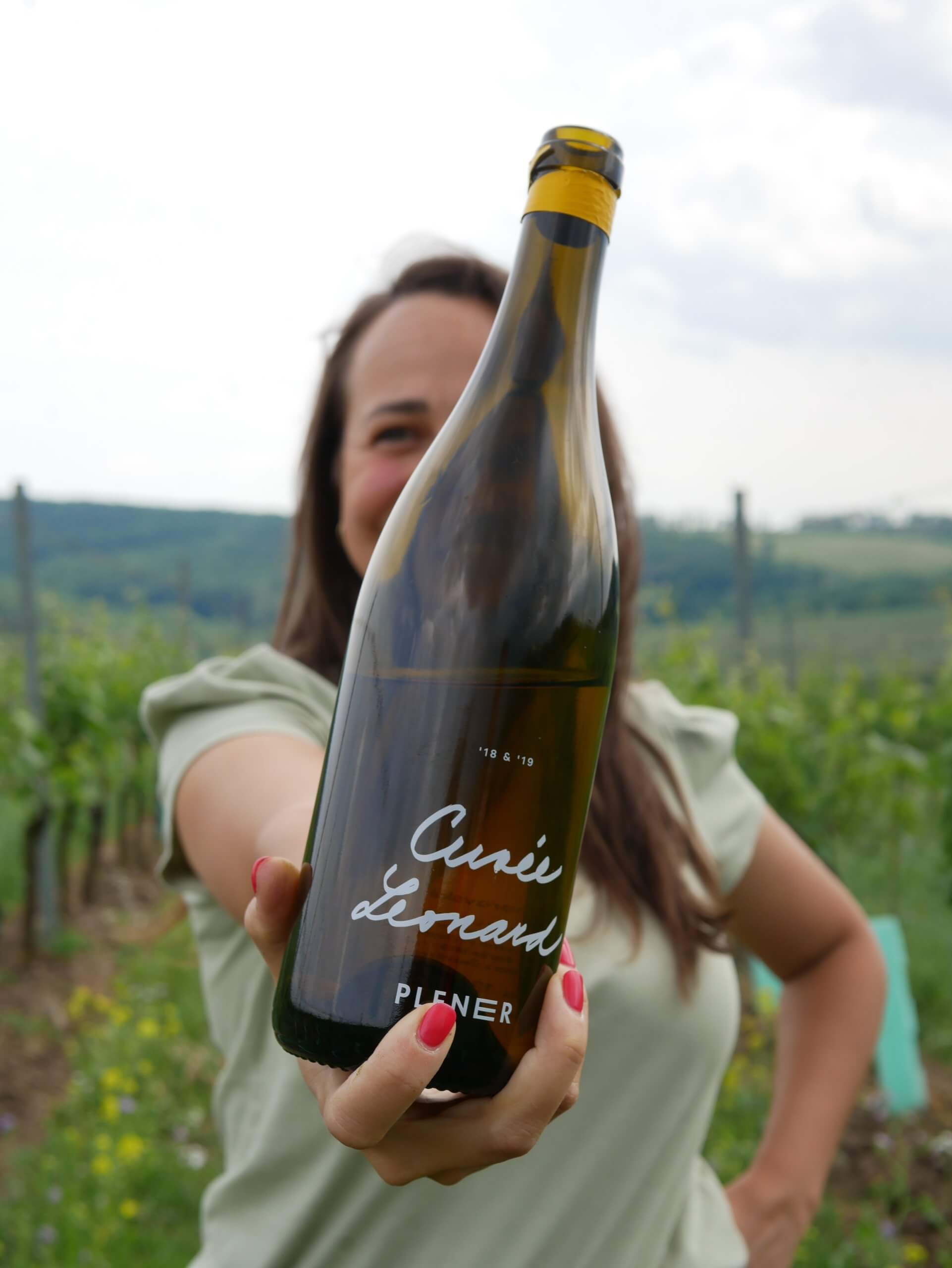 I am in the company of Dominika Černohorská, one of the most gifted winemakers in the region. She pours into my glass, a generous splash of her Cuvée Leonard wine. FYI, I am a very bad wine taster. I hate to spit out wine, especially if it tastes great. This is the 5th wine variety I have tried from her award winning label, Plenér and I love all of them. Dominika asks me what flavours I sense? I can feel a nice juicy acidity which feels refreshing and also a deep intense minerality, which she explains comes from the bedrock of limestone in the area. Why call the wine Plenér ? She decided to call the label Plenér ( In landscape- In Planeur ) from her desire to create a connection between wine and art through her wine. Drinking her wine, at source, in the heart of her vineyard, I definitely feel a strong connection with the earth and this place. I long to sit there for awhile. I gaze in the distance at the limestone hills and mesmerising patterns of long rolling fields in front of me.