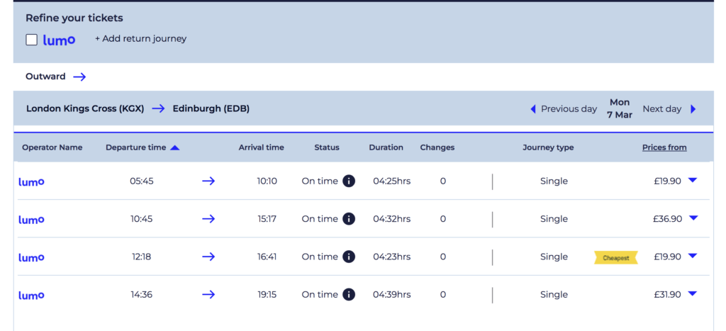 Then again there are also alternatives like the new low-cost Lumo train service between London and Edinburgh where you can get fares as little as £19.90 which is an incredible deal so keep an eye on their website when planning your trip.