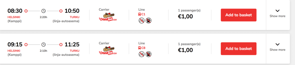 Booking in advance you can get fares from Helsinki to Tampere and Turku for as cheap as €1!