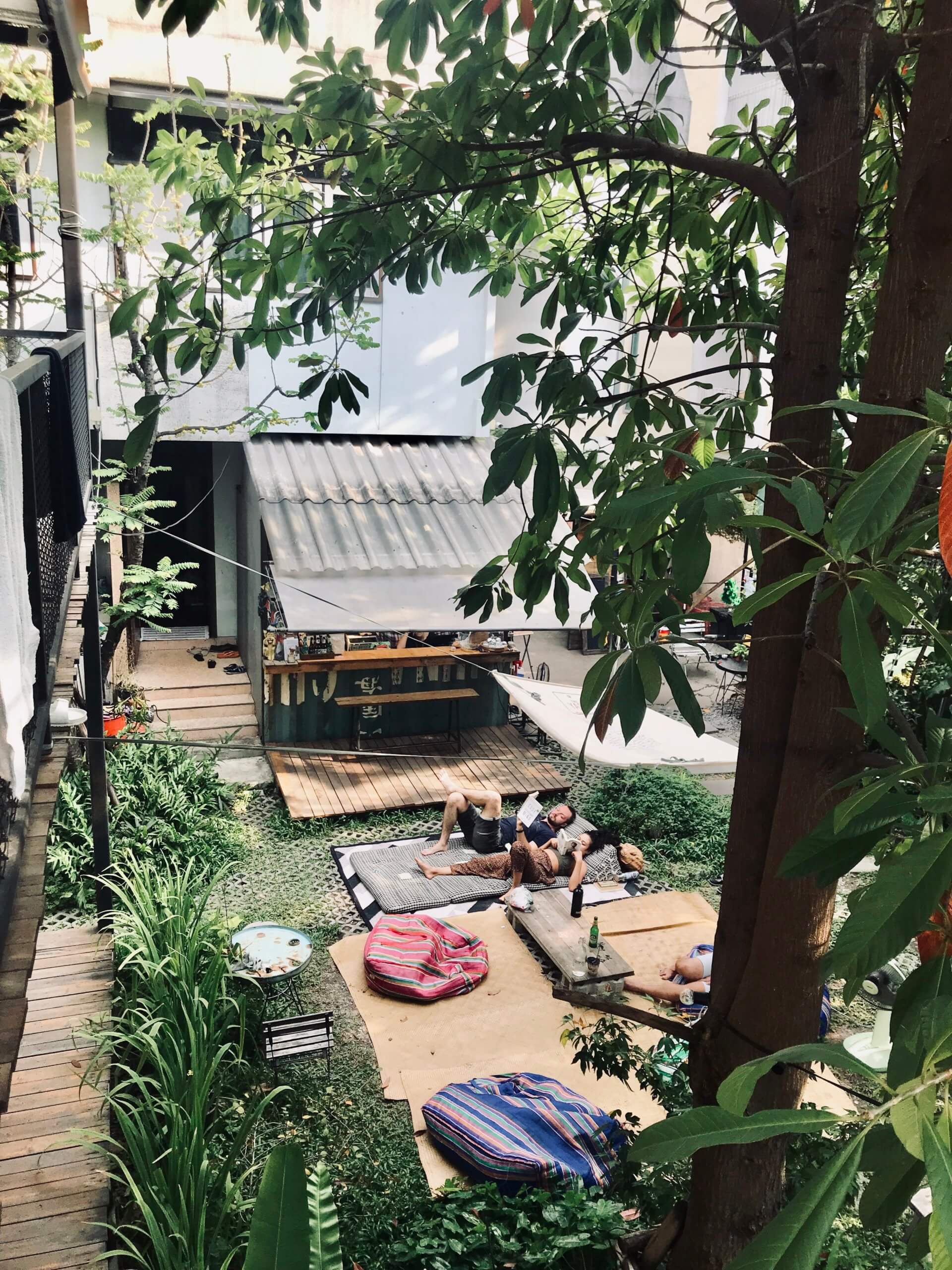 Our other key reason to stay in Ari was to finally stay at the beautiful Yard hostel, a place I had heard rave reviews about from friends. Run by the affable duo, Som and Som, the name Yard is a reference both to the yard in which the shipping containers are built, as well as the Thai translation of the word “Yard” which means relative. How would I best describe the vibe? It is a real oasis of calm in Bangkok – a rarity. Lush trees offer a natural shade over the central lawn courtyard where guests congregate at various times of the day, lazing in the hammock with a book, journaling with a cup of coffee from the hostel bar. It is the kind of hostel where you could easily strike up a conversation in the lounge or lawn area or if you needed your space, there is always a cosy corner to seek refuge. The rooms are very comfortable, mattresses you just sink into and where you fall asleep instantly. The rooms are insulated with recycled paper, LED lightbulbs are used to save energy. In those 5 days, we met so many wonderful guests and had so many great conversations with like-minded people. This hostel reminded me of the reasons I fell in love with travel and backpacking. It was also one of my last proper hostel stays pre-Covid so that’s another reason I remain particularly nostalgic about this hostel.