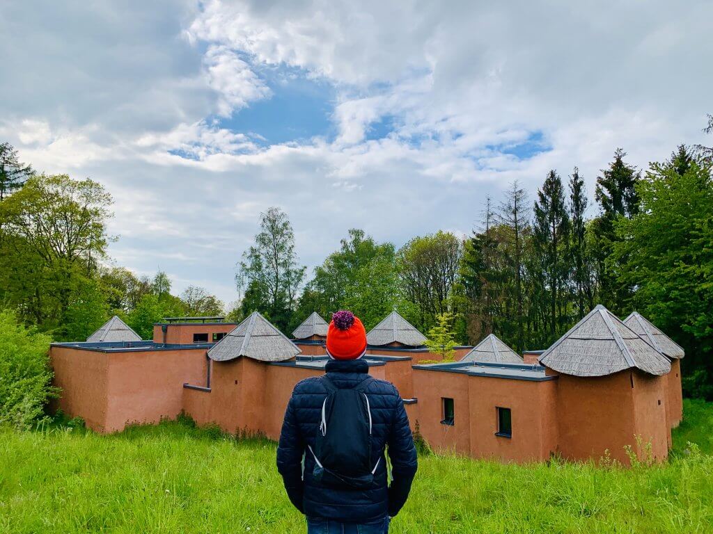 Next morning, we repack our bags and head to the next hostel in our #DJHExtraordinary trip- Panarbora in Waldbröl. Panarbora is in the heart of the Bergisches Land -a beautiful stretch of countryside with pristine historic villages and rolling hills that hide a dark past. Nearby Waldbröl was intended to be developed into the biggest town between Cologne and Kassel. There were plans from Dr. Robert Ley, one of the leading representatives of National Socialism to build an Adolf Hitler School and a Kraft durch Freude – Strength Through Joy (KdF) hotel. The hotel project was started but never finished just like the disused site in Rugen. Apparently the wall from the school which also remain undeveloped still exists and carries the slogan: “No more war!” in huge letters upon the wall. I never got a chance to see this. Panarbora itself used to be a site of the American army barracks, storage place for Patriot missiles and also a launchpad for V1 rockets. After the war , the British destroyed the barracks leaving little trace behind. PS: One of the few remaining intact bunkers from the site is still visible in the grounds of the hostel.