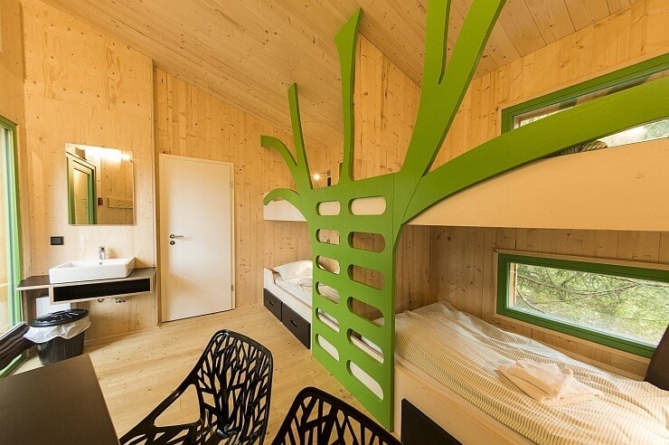 The other standout feature of the hostel is the range and types of accommodation available- guests can choose to stay in one of their themed global villages where you can sleep in a yurt or an african mudwalled house plus my favourite -treehouses! Wooden cabins built on wooden stilts, the treehouses are simple yet modern. The unit we were in had 4 bunk beds but there are options for 2 bed and 6 bed bunk treehouses. Lower bunk beds have a small window with views onto the forest. All the treehouses are equipped with a modern WC including shower. There was also a small terrace per unit which included a table and 4 chairs-perfect for having a picnic with the family or having a beer with friends when the sun is shining.