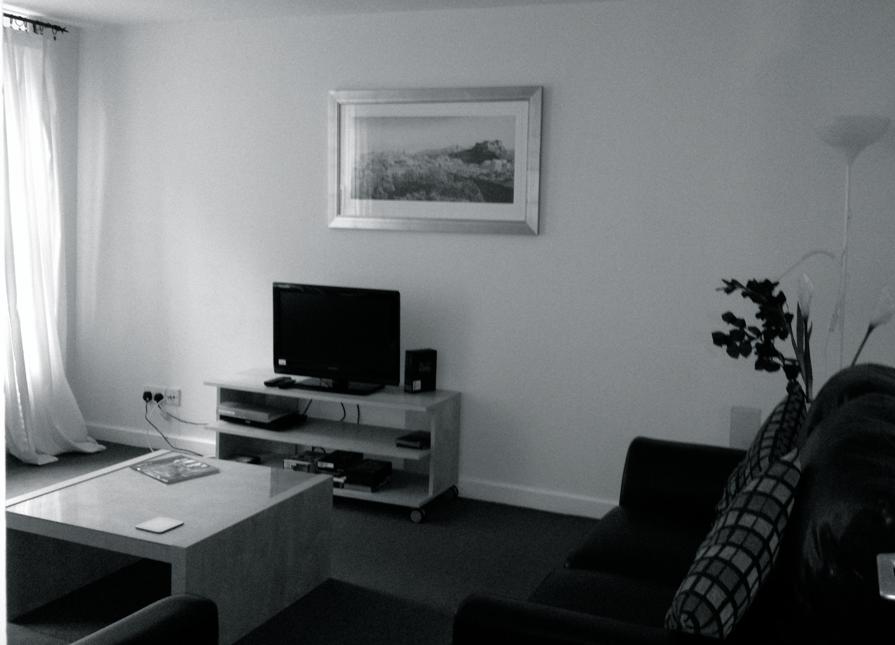 The living room has a very comfortable sofa which I would sink into. It has a nice sized plasma screen TV with all the Freeview channels.