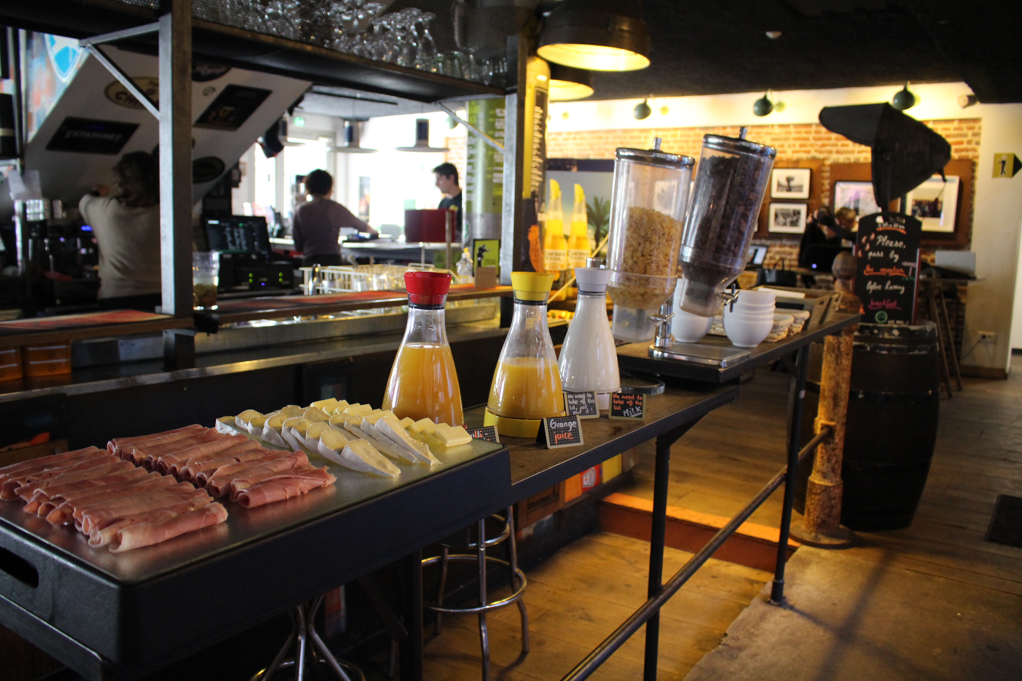 For €4, they also serve a filling breakfast in the morning that consists of 3-4 different cereals, baguettes, jam, nutella, coffee machine (coffee, cappuccino, hot chocolate, hot milk), juice (orange, multi-vitamin).