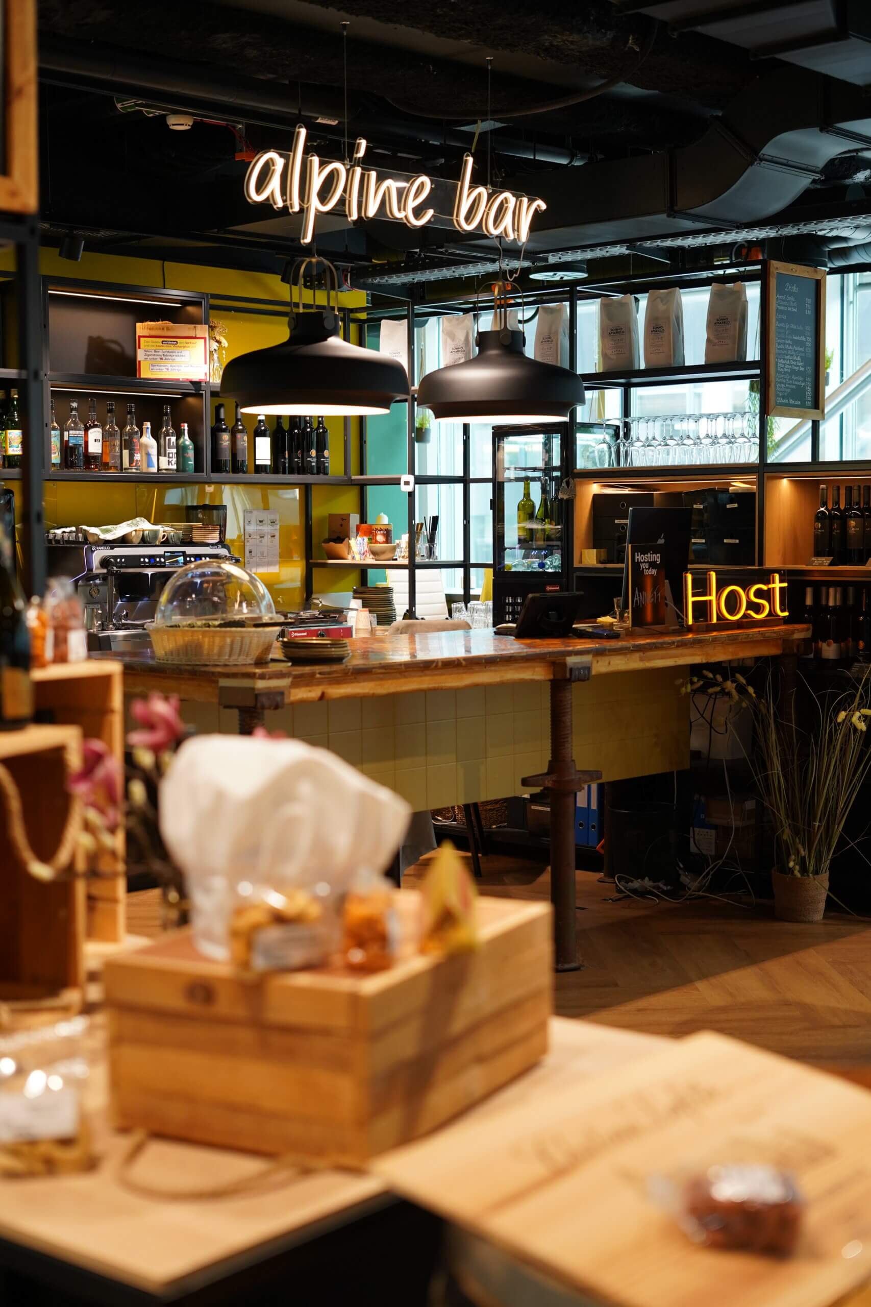 A nice selection of wines are available and also cocktails on demand. There is a supermarket in the terminal about a 10 minute walk away but if you are feeling lazy, there are snacks like Pot Noodles available plus they make excellent flammkuchen and pizza from the oven (cookies too).